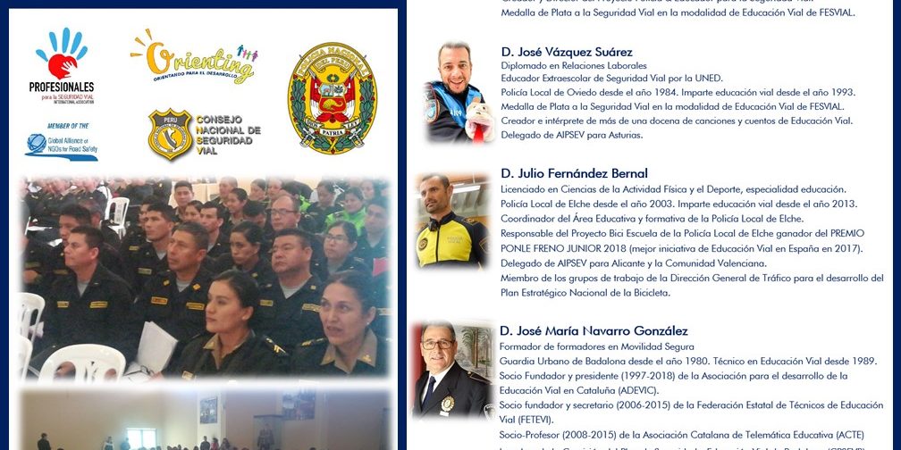 Este 25 Octubre 2018, un equipo de profesionales de la Asociación Internacional de Profesionales para la Seguridad Vial AIPSEV, en colaboración con la ONG Orienting de Perú, desarrollaron una Charla Magistral en Videoconferencia con expositores internacionales desde España y Argentina, expertos en Educación Vial. Quienes expusieron Proyectos de Educación Vial implementados con gran éxito en varias provincias de España, para su conocimiento y aplicación a la realidad peruana.