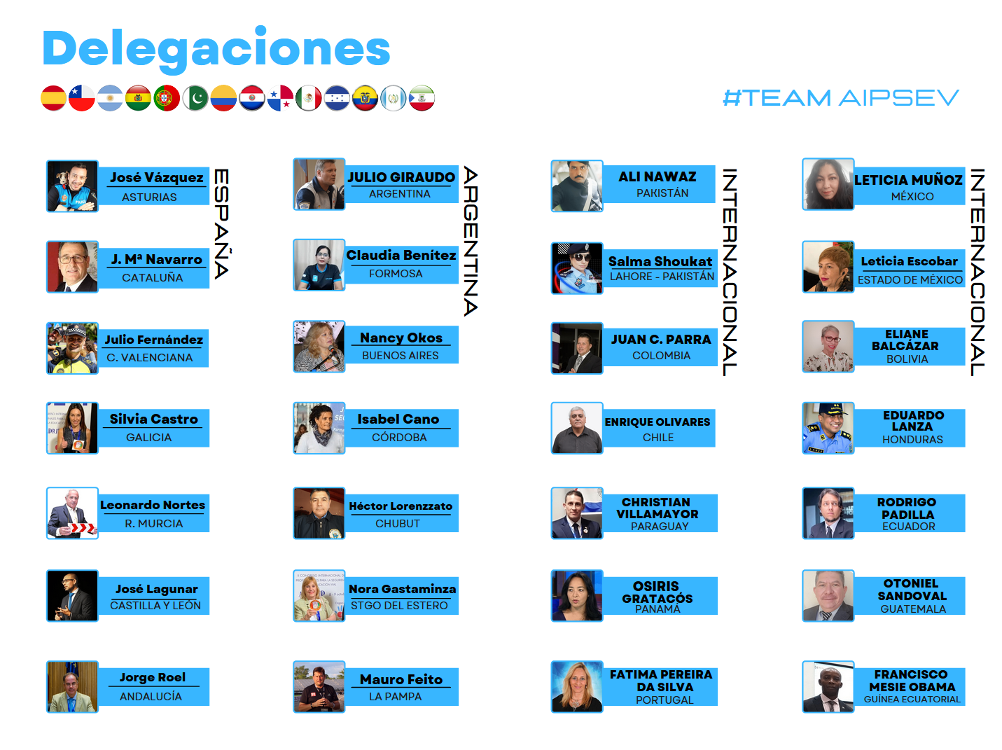 La Asociación Internacional de Profesionales para la Seguridad Vial (AIPSEV), tiene entidad jurídica propia, está registrada en el registro de asociaciones del Ministerio del Interior del Gobierno de España y cumple sus obligaciones fiscales en este país. Para el cumplimiento de sus fines y su misión de reducir las lesiones y muertes por siniestros de tránsito, se organiza geográficamente a través de socios delegados, que adquieren este rol por resolución de la Junta Directiva para el cumplimiento de los fines y la misión de la ONGD en un ámbito geográfico concreto y durante un tiempo determinado.