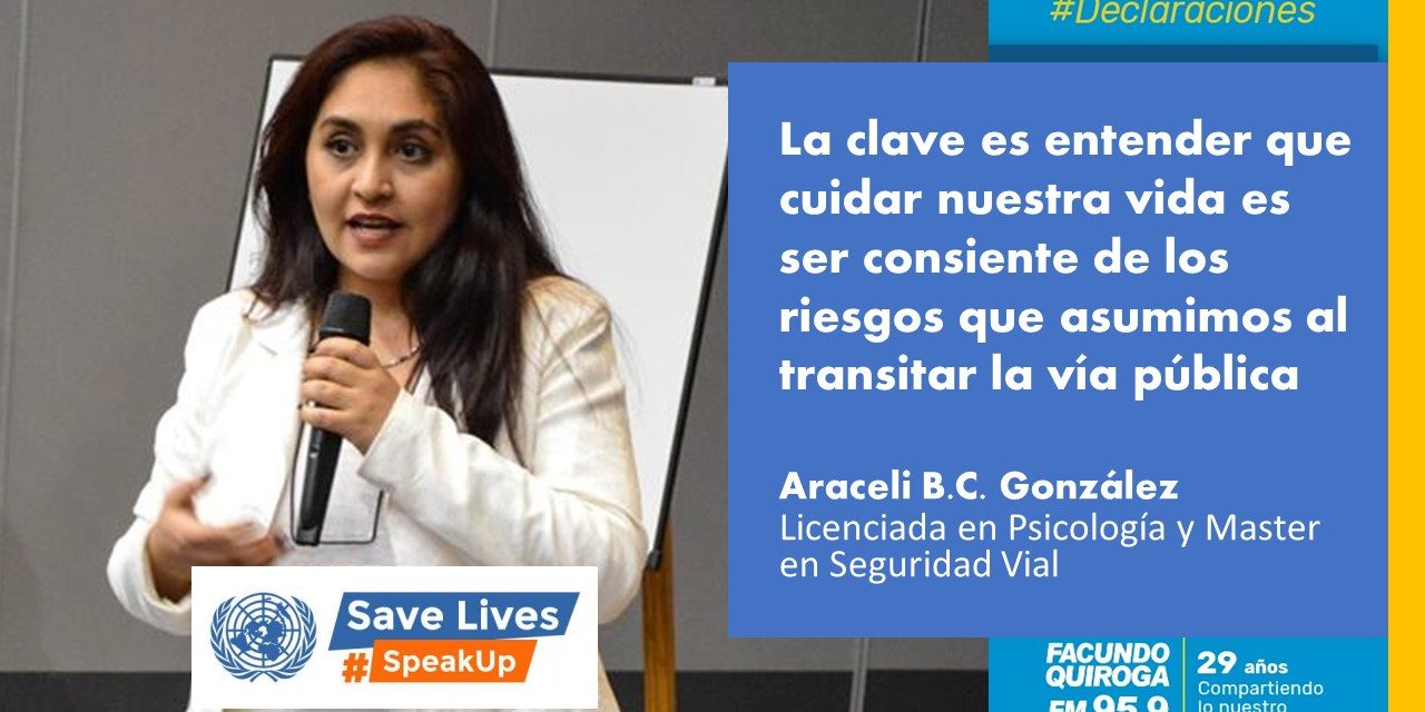 En esta ocasión la vicepresidente y responsable de relaciones institucionales para Latinoamérica, la licenciada Araceli González, habló con Radio Facundo Quiroga sobre “la calve para entender que cuidar nuestra vida es ser consiente de los riesgos que asumimos al transitar la vía pública”, destacando la oportunidad que representa formar “a las nuevas generaciones para que tengan otros hábitos al manejar un vehículo”.