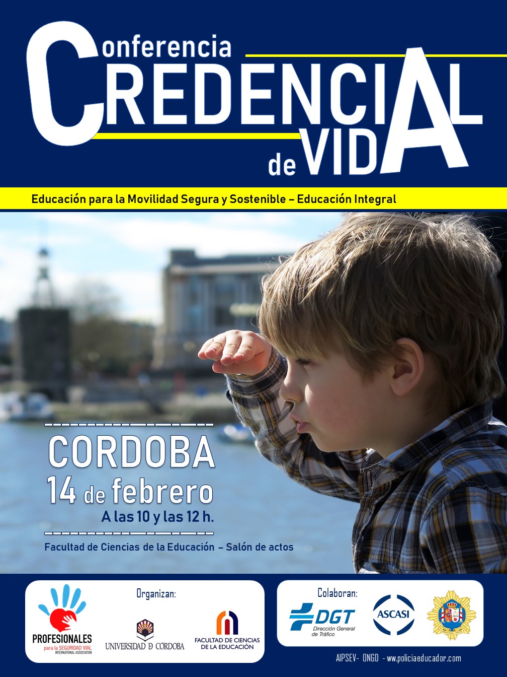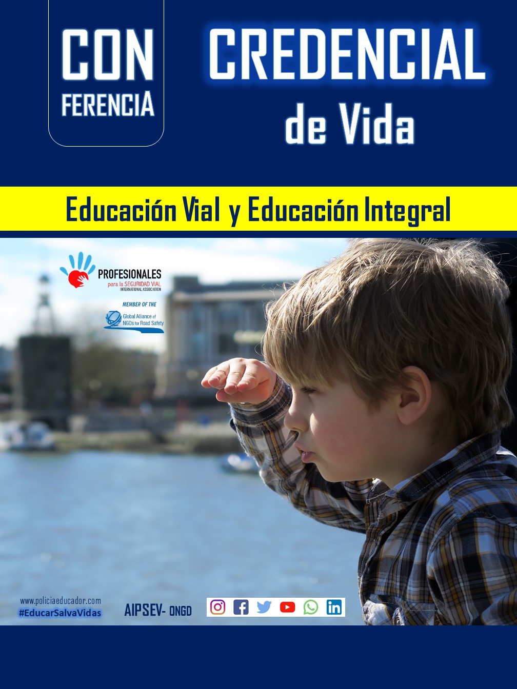 La Conferencia Credencial de Vida, es un llamado para los próximos policías y educadores, para sensibilizarles sobre las nefastas consecuencias de la lacra mundial de los siniestros viales, mostrándoles el poder de la educación para prevenir los siniestros viales y la violencia vial, con el objetivo de que en el desarrollo futuro de sus profesiones adquieran el compromiso conjunto de educar para salvar vidas, promoviendo sinergias entre la Escuela, la Familia y la Administración para fomentar una movilidad segura y sostenible en los centros escolares.