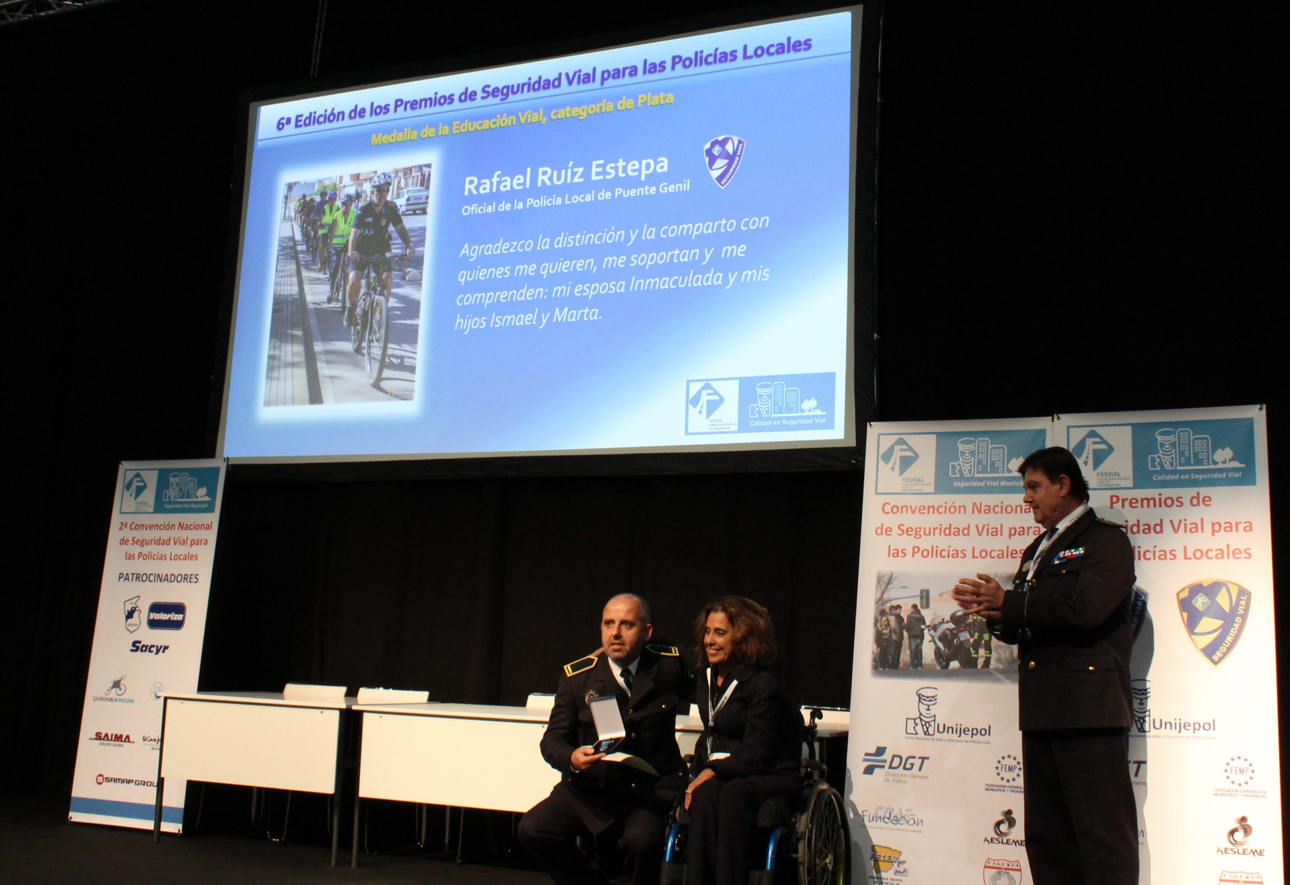 Obtuvo el primer premio a la mejor comunicación libre con el “Proyecto Policía & Educador para la Seguridad Vial”, en el II INTER-CISEV en Sevilla en 2017, que volvió a exponer ese mismo año en la II Convención Nacional de Seguridad Vial para las Policías Locales en Madrid, donde fue distinguido por la Fundación Española para la Seguridad Vial (FESVIAL) con la Medalla de Plata de la Seguridad Vial en la categoría de Educación Vial.